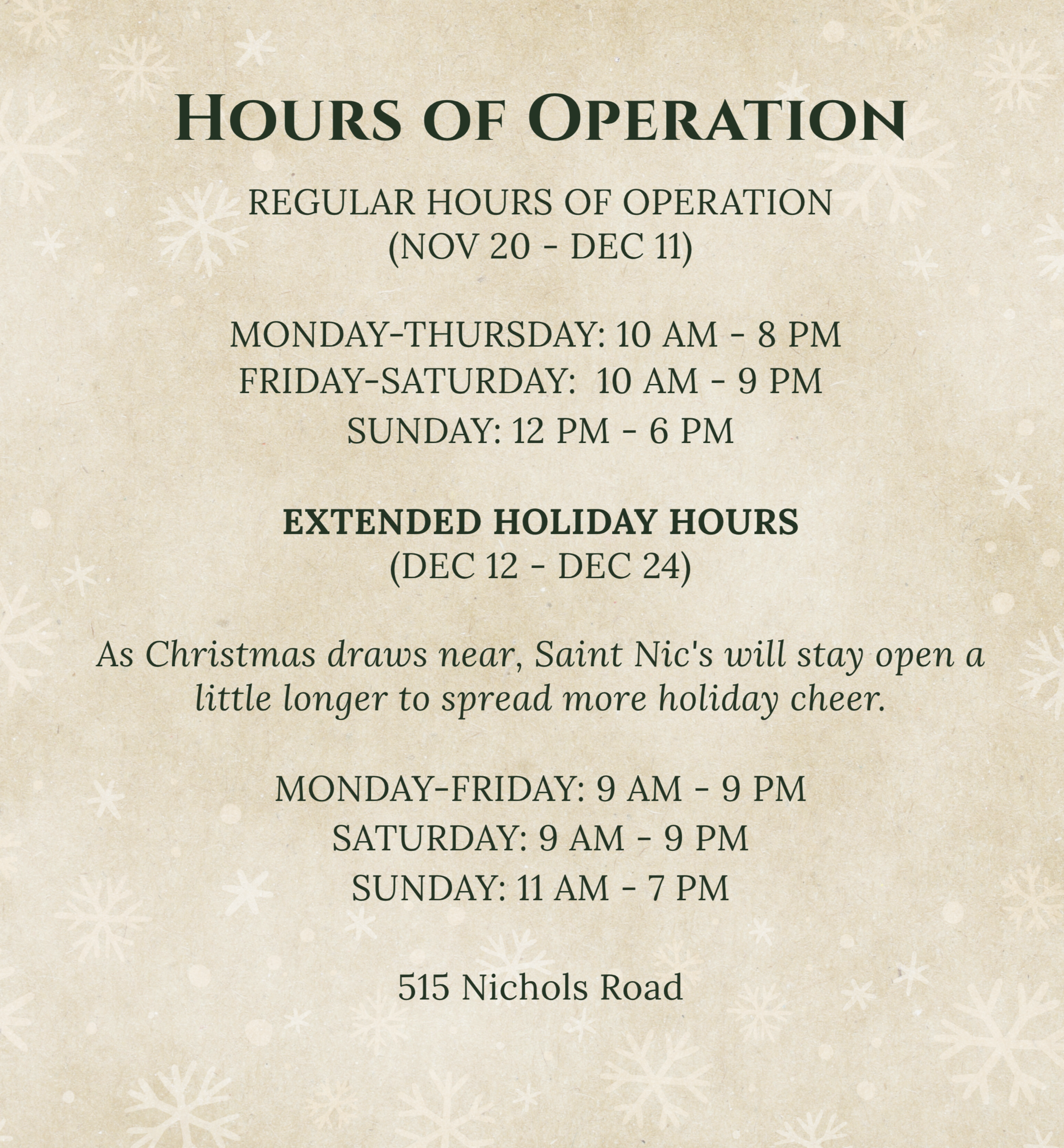 Each visit includes your personal moment with Saint Nic, a cozy treat from Mrs. Claus’s Kitchen, and the chance to experience Christmas as it was meant to be — warm, joyful, and unforgettable.